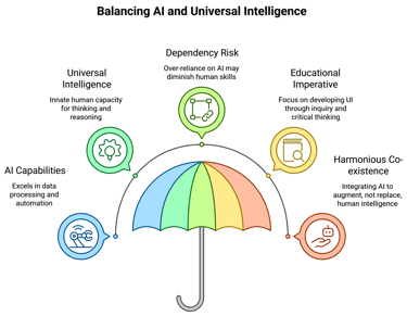 Therefore, the imperative for educators and societal frameworks is to consciously re-emphasize the development of UI. This involves cultivating environments that promote genuine inquiry, foster independent critical thinking, encourage ethical deliberation, and provide ample opportunities for experiential learning. The goal is not to resist AI, but to integrate it judiciously—as a powerful tool that augments, rather than supplants, human intelligence. By championing UI, we ensure that future generations remain agile, innovative, and ethically grounded, capable of harnessing AI's power while safeguarding the distinct essence of human ingenuity. The harmonious co-existence of AI and UI is paramount for a future where technology truly serves humanity's highest potential.